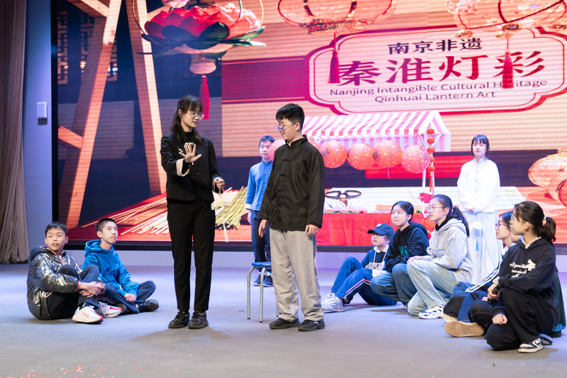 聚焦南京秦淮灯彩与白局非遗文化,演员们现场展示灯笼制作技艺、唱响白局经典唱段,中英文对话自然衔接。