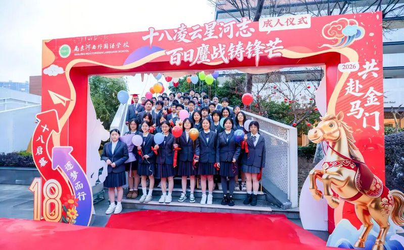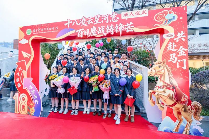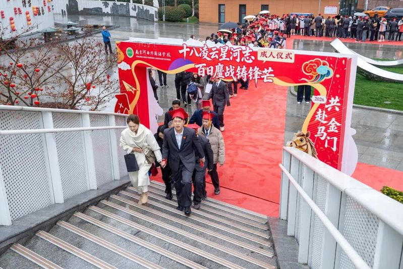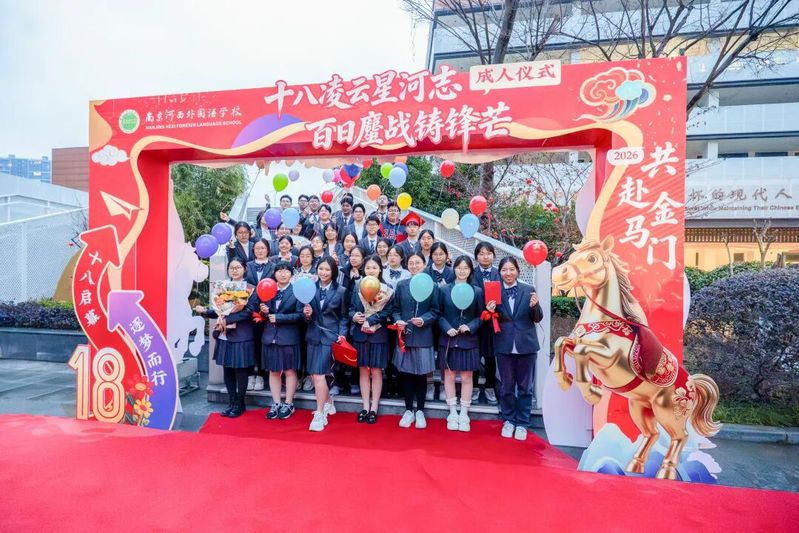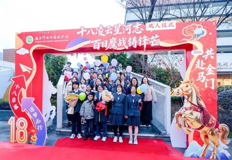2026年2月27日下午,南京河西外国语学校举行了以“十八凌云星河志,百日鏖战铸锋芒”为主题的成人仪式。这不仅是一场青春的盛典,更是一次宣告——2026届高三学子从此褪去青涩,跨越从少年到成年公民的重要里程碑。校领导、全体高三师生及家长齐聚一堂,共同见证了这一荣耀时刻。