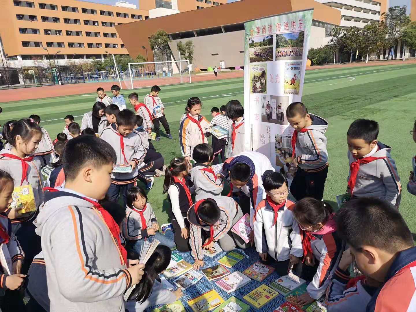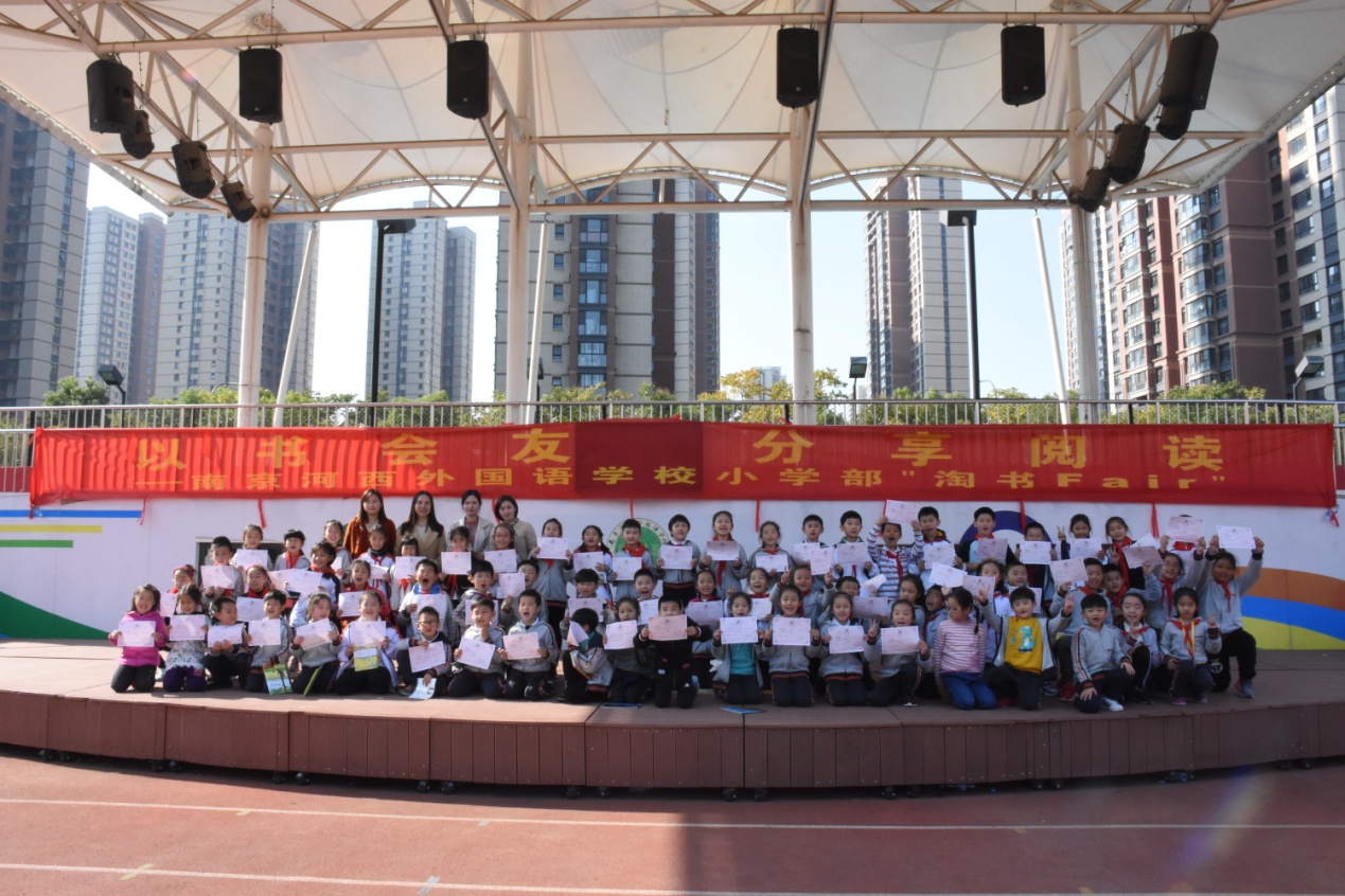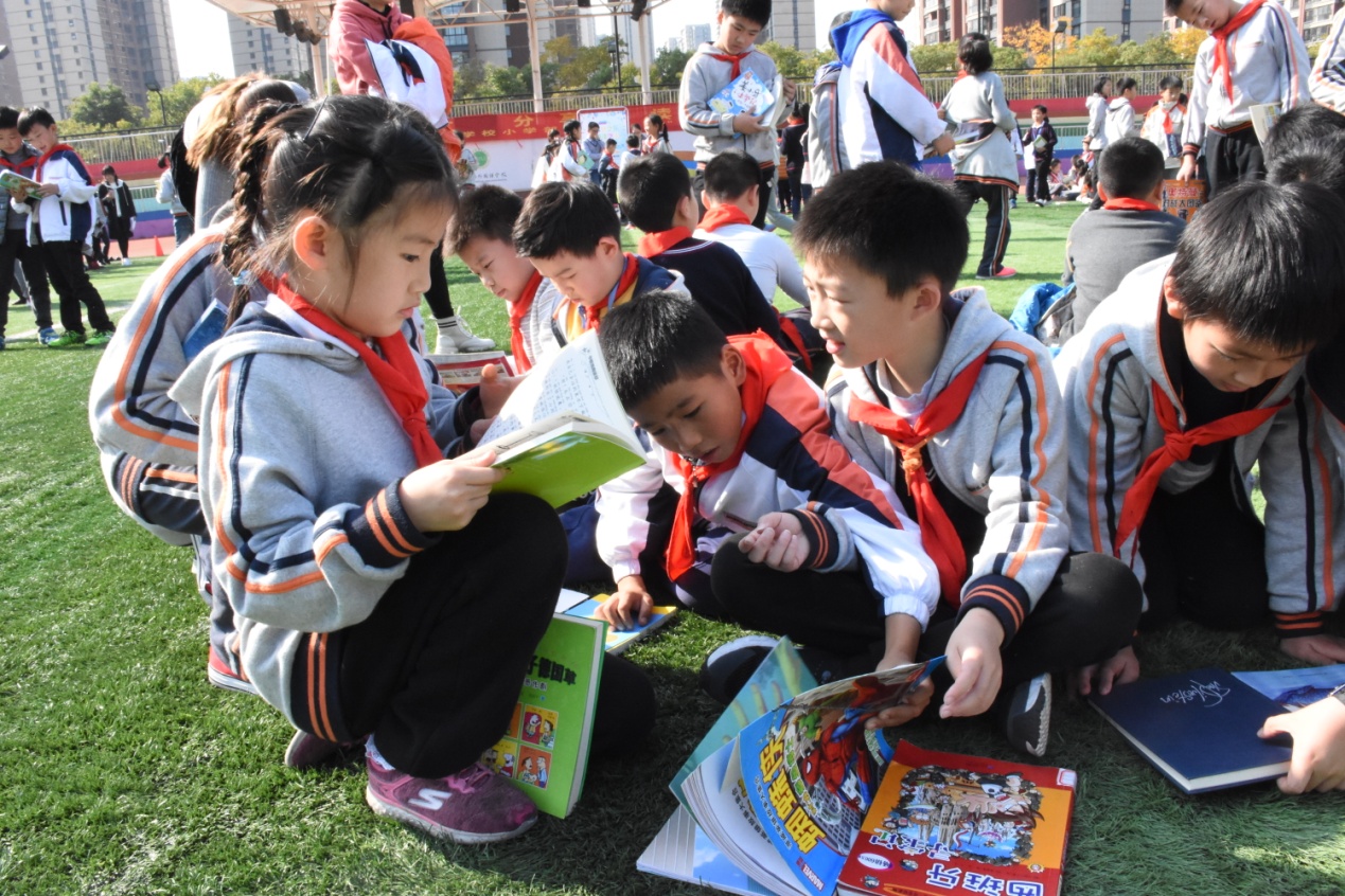 11月9日下午,河西外国语学校小学部全体师生参加了淘书会活动。午后的操场热闹非凡,满是欢声笑语。本次淘书会以书换书,旨在营造爱读书的氛围,使好书流动起来,让同学们在交流中增进友谊,在书海中遨游,共享阅读的快乐。