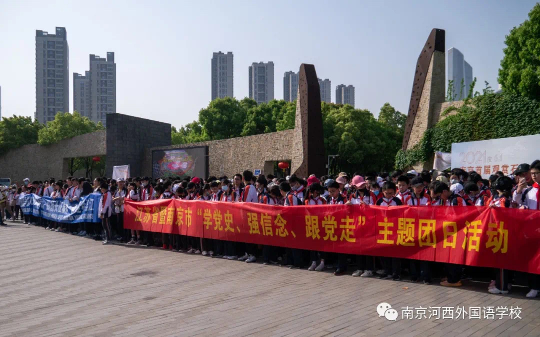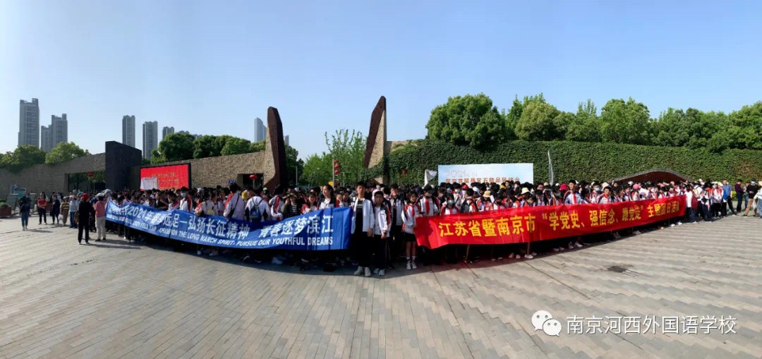 为庆祝中国共产党成立100周年,在校团委和学生处的组织下,4月30日上午8:00初中部及高一高二全体教师与团员来到南京国际青年文化公园北门集合,开展主题为“弘扬长征精神,青春逐梦滨江”远足活动,徒步历经近13公里,到达终点目的地中山码头。“学党史、强信念、跟党走”,青春心向党,逐梦滨江行。 下午,全体高三党员教师和学生团员来到雨花台风景区,开展“五四精神薪火传,正当时代追梦人”主题团日活动。重温入团誓词,牢记初心使命。