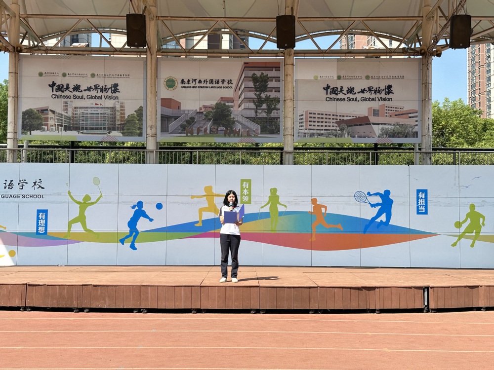 刘:我是初三年级的刘天乐,很荣幸由我们来主持今天的晨会。