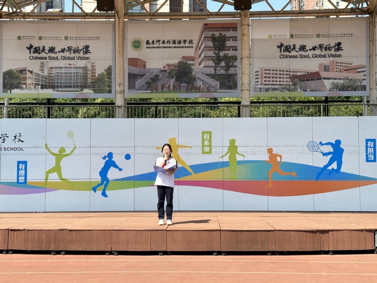 刘:接下来,有请初三年级的李全雅同学,请她带来演讲《勿忘国耻,振兴中华》。