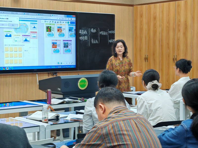 鲍静老师指出,地理素养教学应注重在情境中发现问题并解决问题,她还强调人工智能的应用不应停留于形式,而应聚焦于突破教学难点,培养学生理性思维、领导力与创造力,真正提升课堂品质。最后,张静副校长补充指出,技术工具的价值在于解决传统教学难以实现的认知转化问题,在于通过交互平台捕捉学生思维过程。她鼓励教师主动在教学中融合人工智能技术,并积极开展教学研究,关注自身专业成长。本次活动为推进地理教学与信息技术深度融合、提升课堂实效提供了实践启示。