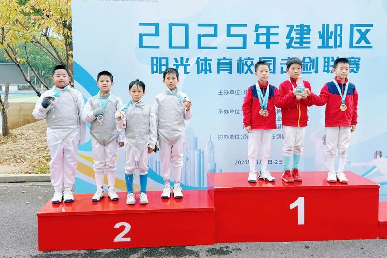 2025建邺区阳光体育校园击剑联赛圆满落幕,南京河西外国语学校学子不负众望,在激烈角逐中一路披荆斩棘,获得多项冠亚军,并强势斩获小学组与初中组团体总分一等奖。