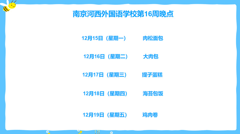 南京河西外国语学校小学部2025-2026第一学期第16周食谱2025.12.15-12.19